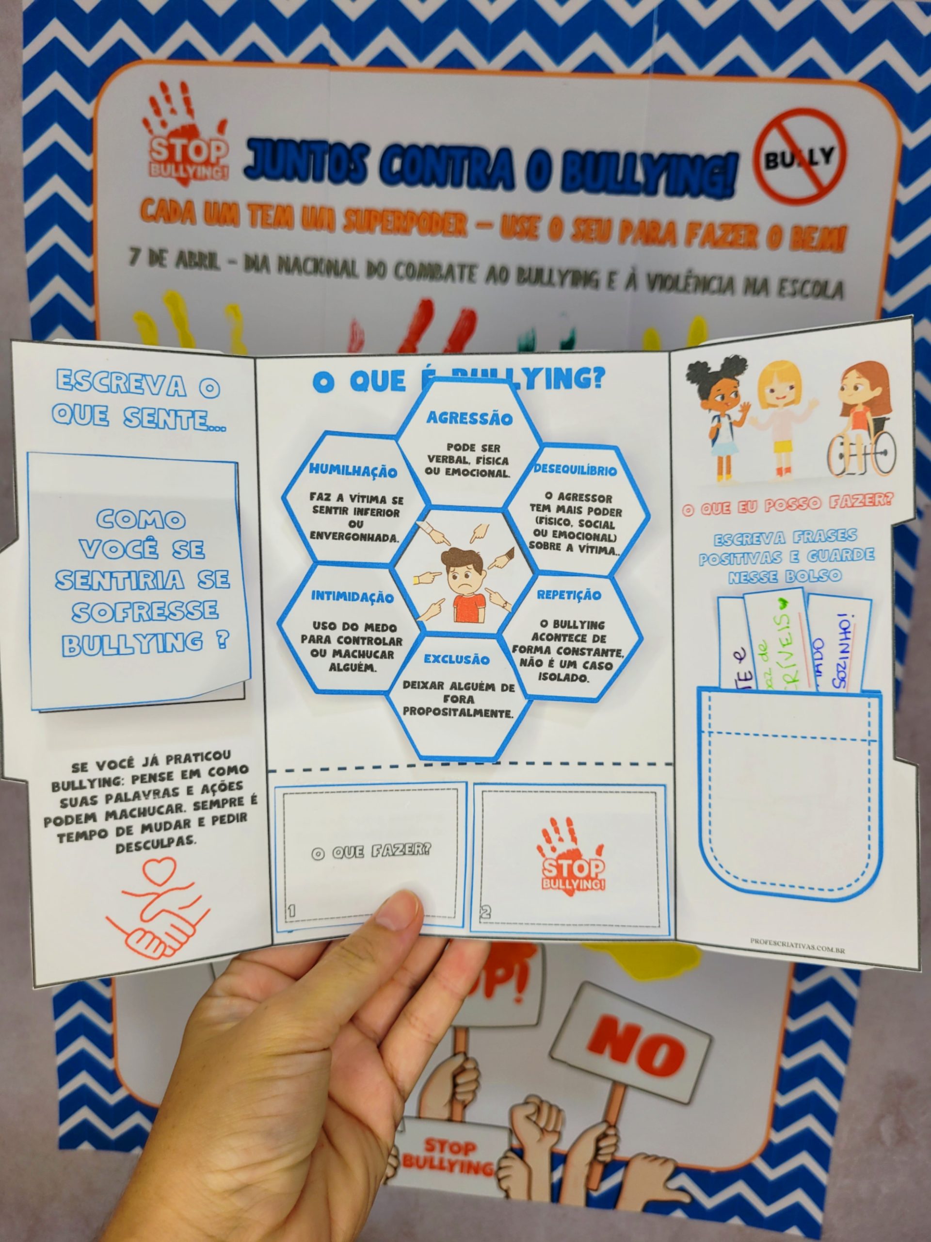 Lapbook interativo sobre bullying, com elementos para recortar, colar e montar.