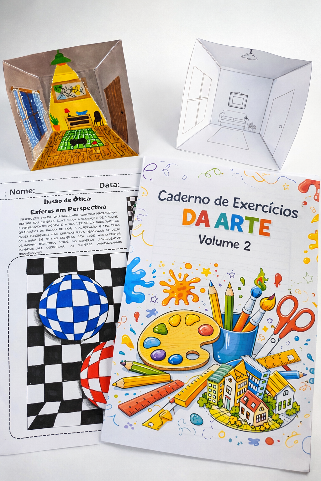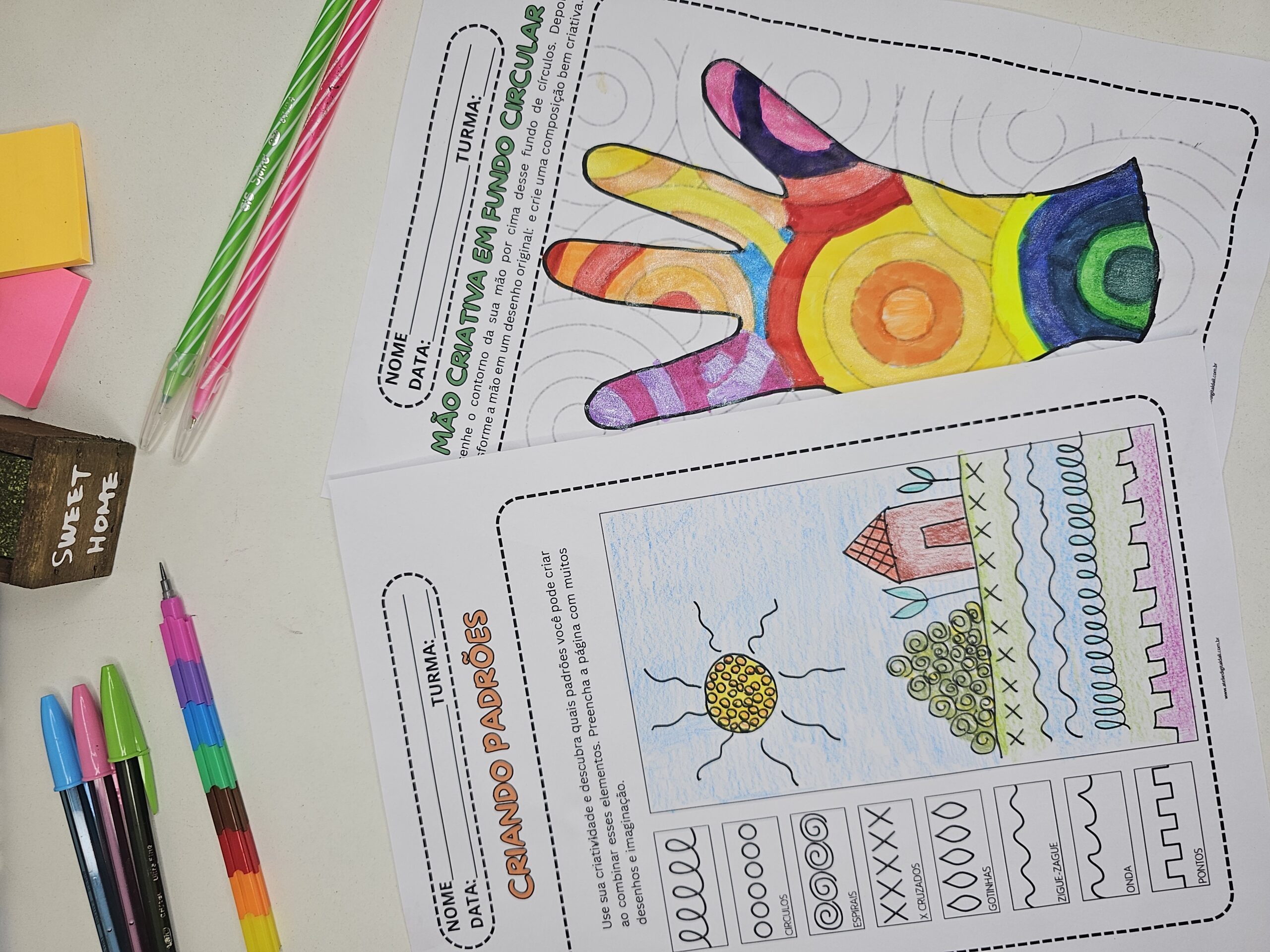 Esse kit reúne dois cadernos cheios de propostas que desenvolvem percepção visual, criatividade, coordenação motora e expressão artística de forma simples e prática em sala de aula.